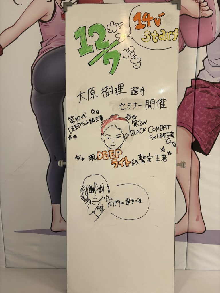 今月の外部講師セミナーはDEEPライト級暫定王者になったばかりの大原樹理選手が来てくれます!