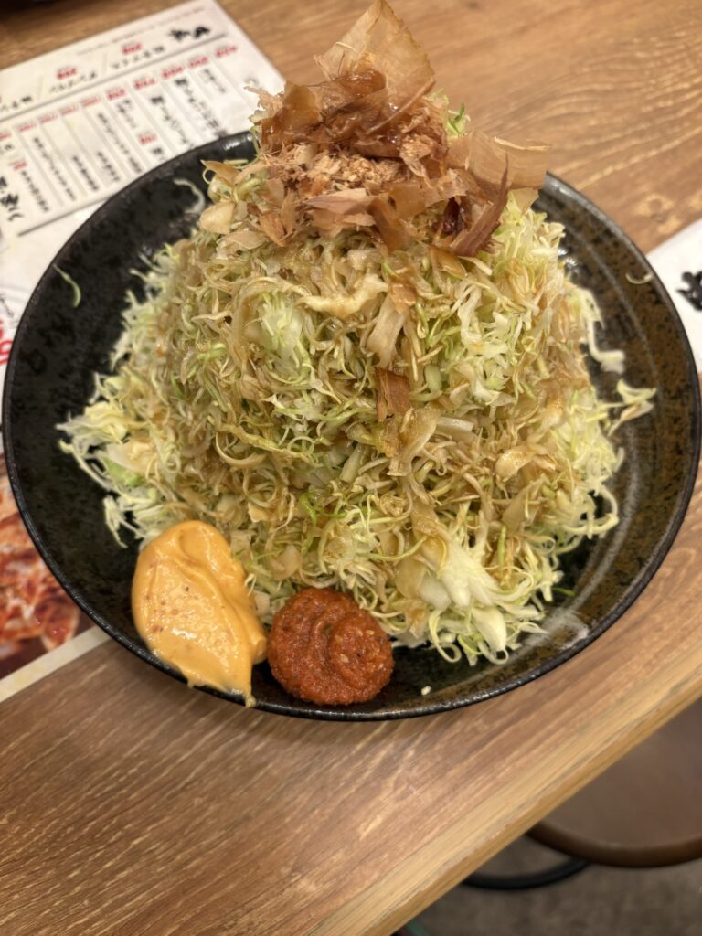 山盛りキャベツのコチュジャンが辛くて美味しくてキャベツが進む。